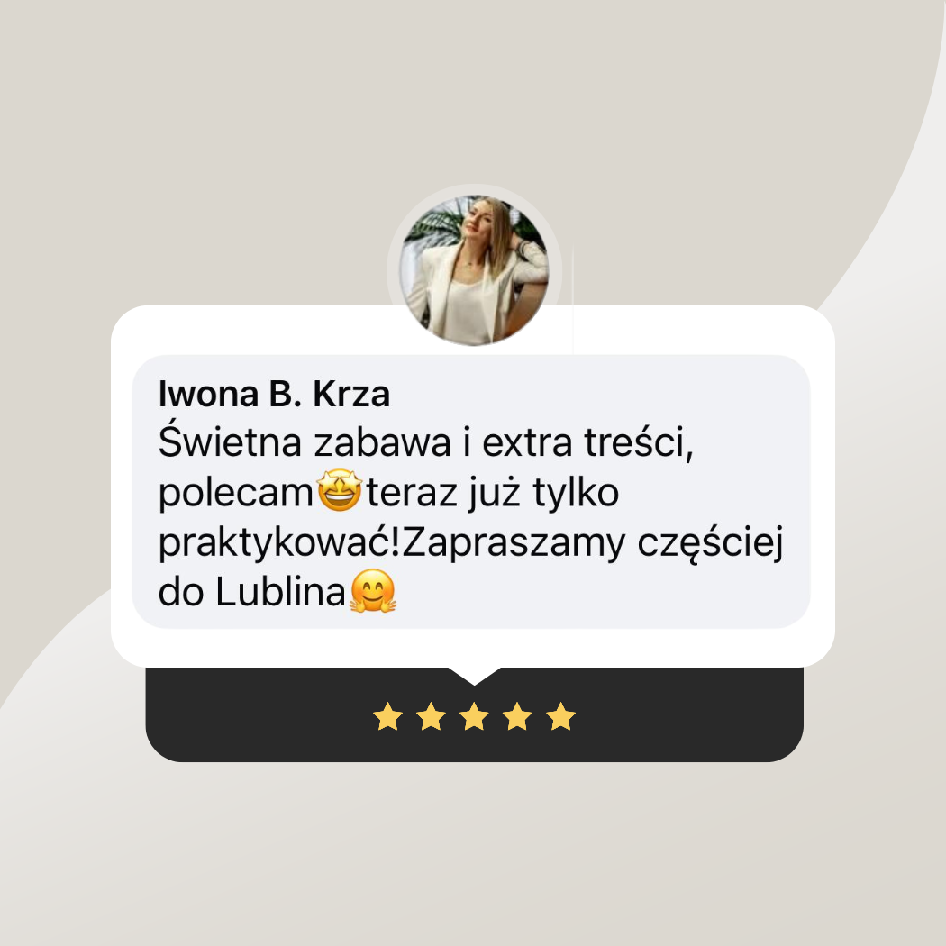 Te materiały to wspaniałe uzupełnienie dla każdego, kto uczestniczy w spotkaniu stacjonarnie i pragnie pogłębić swoją wiedzę oraz efektywnie pracować nad relacjami. Materiały zostaną Ci wręczone na miejscu w formie gotowych, wydrukowanych arkuszy i będą wykorzystywane podczas wydarzenia.