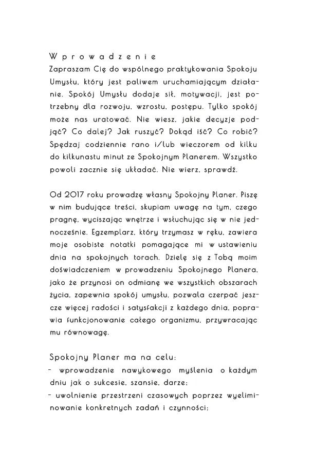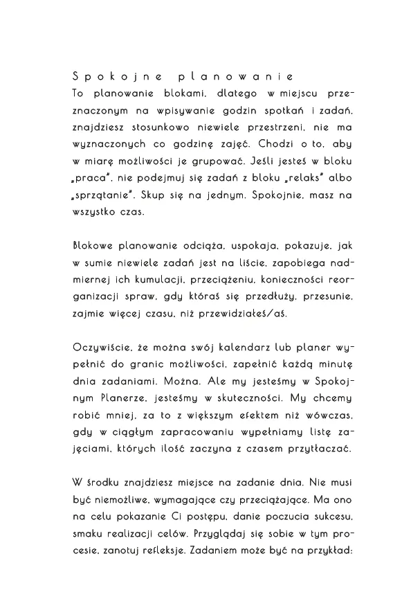 Zobacz przykładowe strony ze Spokojnego Planera nr 1 w galerii powyżej (pod zdjęciem produktu).
